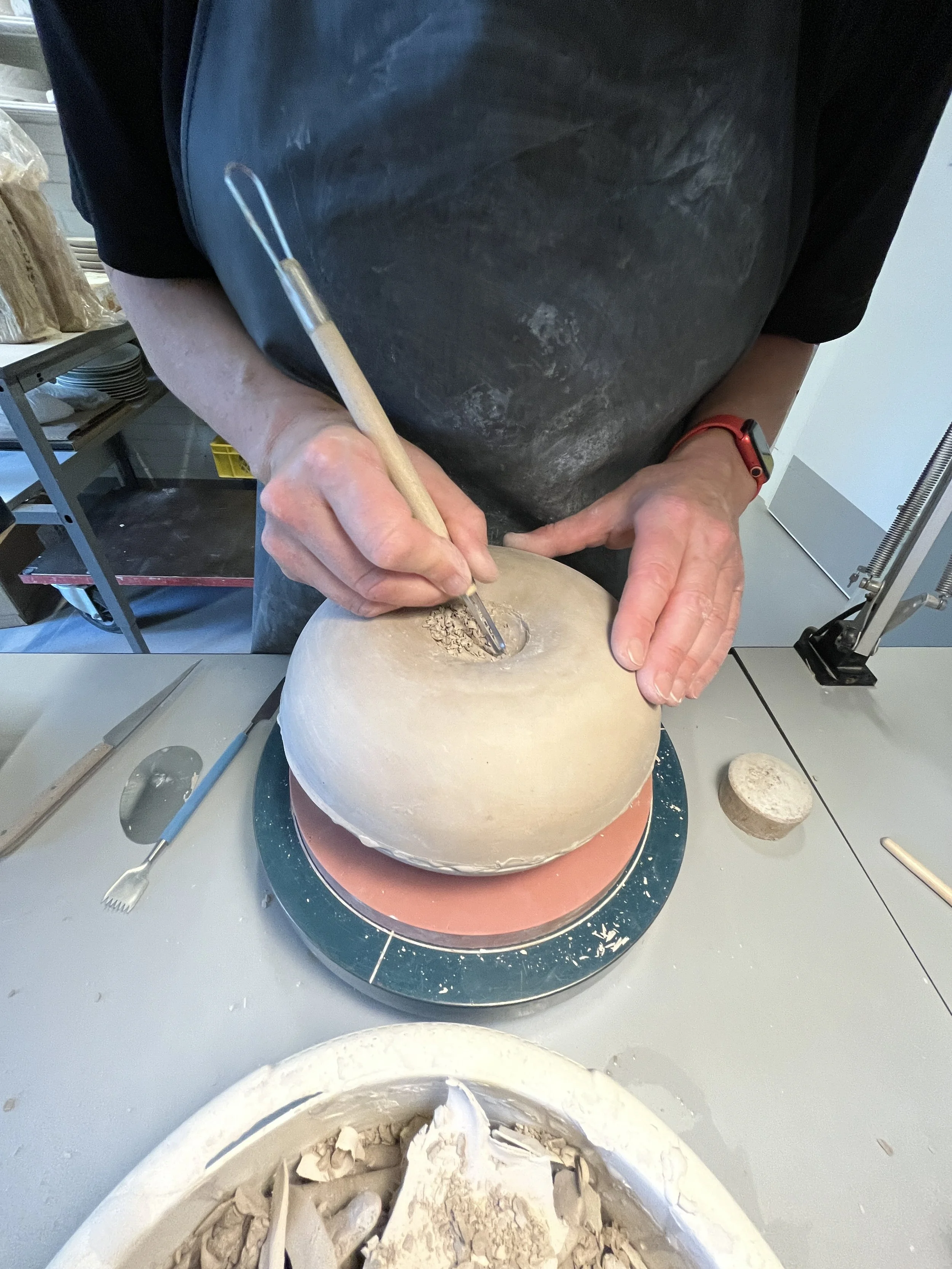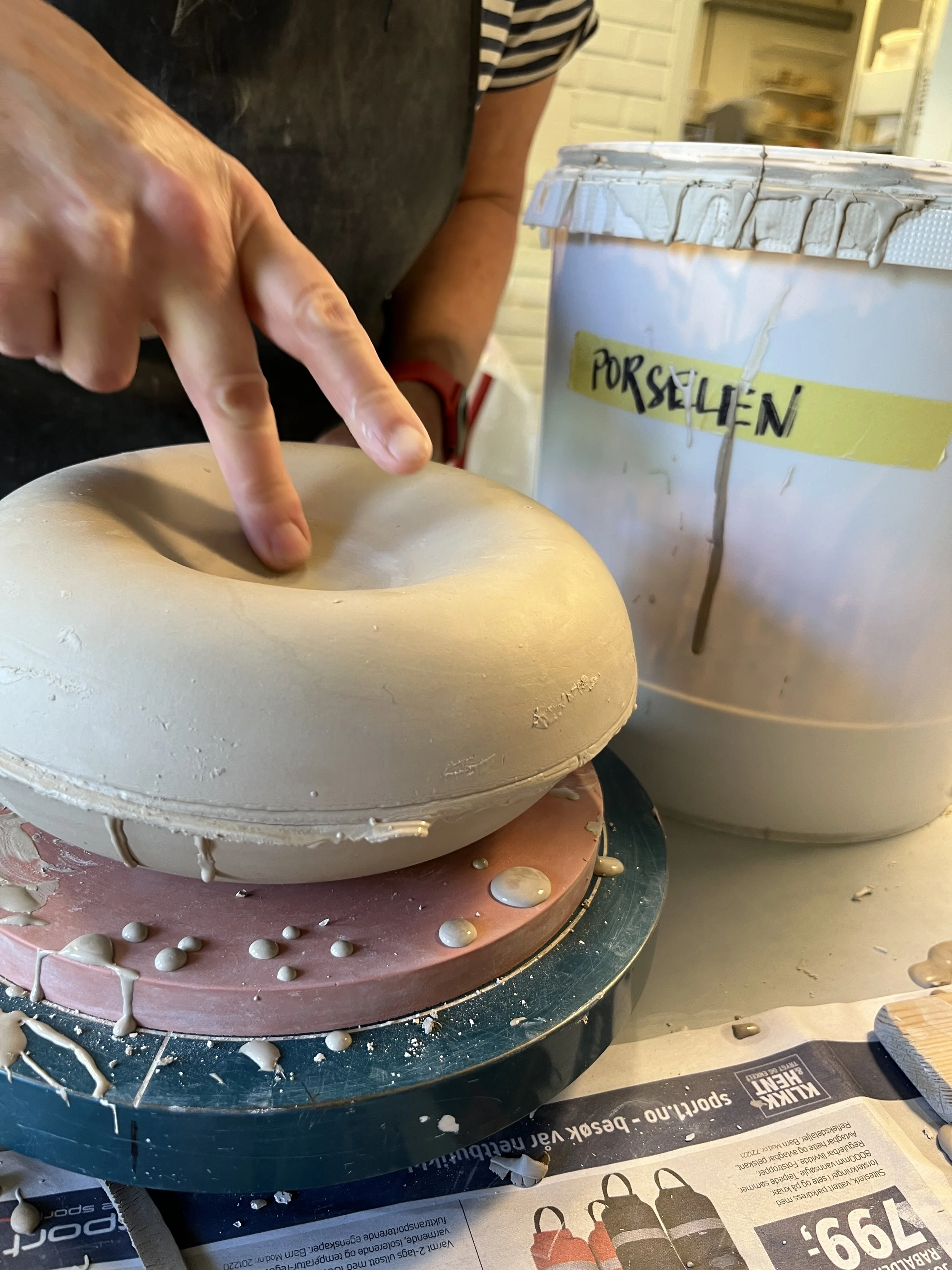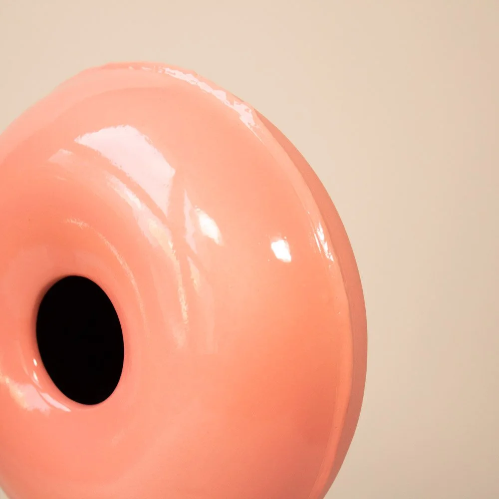The top is made from two bowls joined together, creating the inflated bubblegum-ish look.